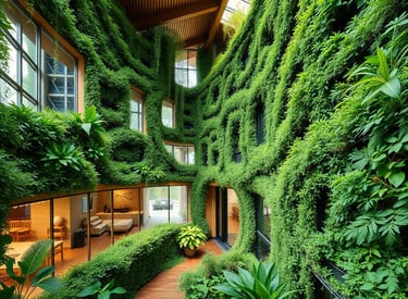 An eco-conscious family home integrated into a forested hillside. Living roofs and natural materials minimize environmental impact while maximizing connection to nature.
